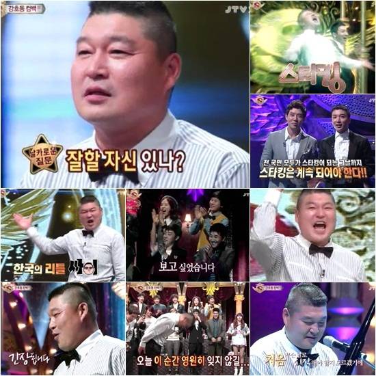 한편, '스타킹'은 강호동의 복귀와 함께 시청률이 급상승했다. 11일 오전 시청률조사회사 AGB닐슨미디어리서치 집계 결과 지난 10일 오후 방송된 '스타킹'은 전국 기준 16.2%의 시청률을 기록했다. 이는 지난 방송분이 기록한 시청률 10.8% 보다 무려 5.4%포인트나 상승한 수치로 동시간대 1위의 기록이다.