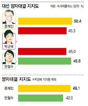 박 지지층 뺀 계층서…문 49.1% > 안 42.0%