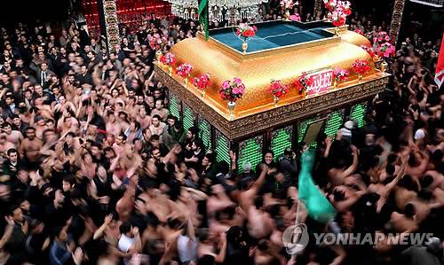 epa03485837 Iranian and Iraqi Shiites mourn at the Ashura ceremonies at the Kerbala mosque in Tehran, Iran, 25 November 2012. The Ashura day commemorates the death anniversary of the third Shiite Imam Hussein, who was grandson of Muslim Prophet Muhammed. Ashura is the peak of ten days of mourning when Shiite Muslims mourn the killing of Imam Hussein whose shrine is in Karbala in southern Iraq. EPA/ABEDIN TAHERKENAREH