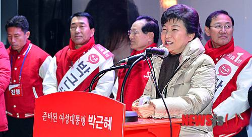 또 방송인 김흥국, 가수 설운도씨 등도 박 후보 지원유세에 나서기도 했다. 김씨는 서울 양천구 목동 유세에 참석해 "반갑습니다. 호랑나비입니다"라고 자신을 소개한 뒤 "저도 박근혜, 준비된 여성대통령을 위해 이 자리에 들이댔다"고 언급해 눈길을 끌었다.