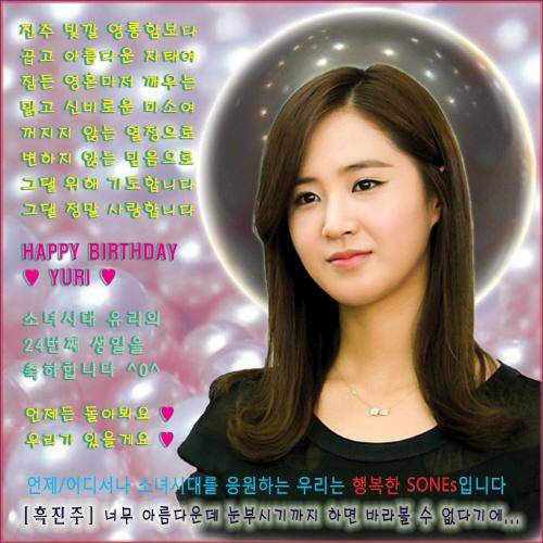 소녀시대 흑진주 유리가 12월 5일 24번째 생일을 맞이하였다.