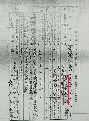 1945년 3월 박정희의 형이 구미면사무소에 제출한 '임시육군군인(군속)계'. 박정희 이름이 '다카키 마사오(高木正雄)'으로 기록돼 있다. ⓒ정운현 전 친일반민족행위자진상규명위원회 사무처장 |