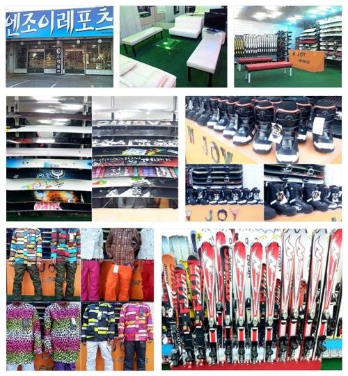 베어스타운 정문 앞에 위치한 엔조이레포츠의 경우 올 시즌을 맞아 신상 100벌을 추가로 확보하는 것은 물론 전문적으로 관리한 다양한 스키보드장비를 보유, 렌탈서비스를 제공하고 있다. 필요한 장비가 많고, 무겁다는 점을 고려해 고객을 픽업해 대여, 이용하는 방법까지 알려주고 있으며, 원하는 경우 보드대여 및 보드복대여, 스키대여, 스키복 대여뿐만 아니라 보드강습, 스키강습도 실시하고 있다.