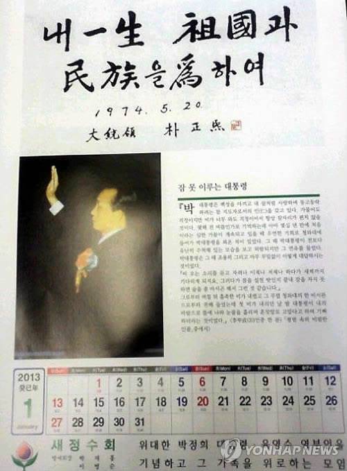 (광주=연합뉴스) 장덕종 기자 = 8일 광주 남구 공원 일대에서 배포된 박정희 전 대통령과 육영수 여사의 사진이 실린 달력. < < 지방기사 참고 > > 2012.12.8.