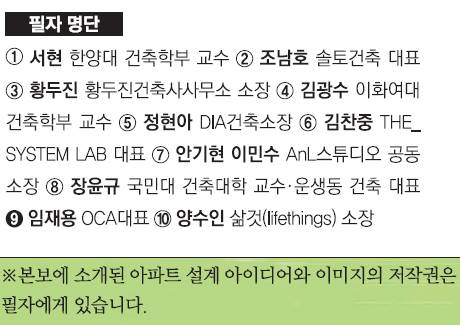 아파트의 변신은 두 가지로 가능하다. 첫째는 아파트의 내부를 변화시켜 다양한 사회적 요구를 담아내는 것이다. 둘째는 아파트에 개개의 마당을 만들어 새로운 주거환경을 만들어 내는 것이다. 필자는 후자에 더 관심이 있는데 최근 꾸준한 실험을 통해 어느 정도 새로운 주거형식으로 구체화되고 있는 것이 테라스 아파트이다.