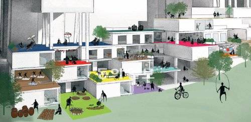 테라스 아파트가 만들어내는 정겨운 마을 풍경을 상상해보자. 일광욕을 즐기는 신혼 부부, 텃밭을 가꾸는 노인, 에어로빅 교실이 열리는 주민센터 테라스, 아이들과 놀고 있는 젊은 부부, 친구들과 생일 파티를 하는 골드미스, 장독대에서 된장을 푸고 있는 아주머니, 정원을 꾸미고 있는 일가족, 조용히 책을 읽는 학생, 빨래를 널고 있는 아주머니 혹은 아저씨, 줄넘기를 하는 고등학생, 고추를 말리고 있는 할머니, 바비큐 파티가 벌어진 김 부장 집, 음악 감상 하면서 테라스 밖의 풍경을 응시하는 옆집 아가씨….