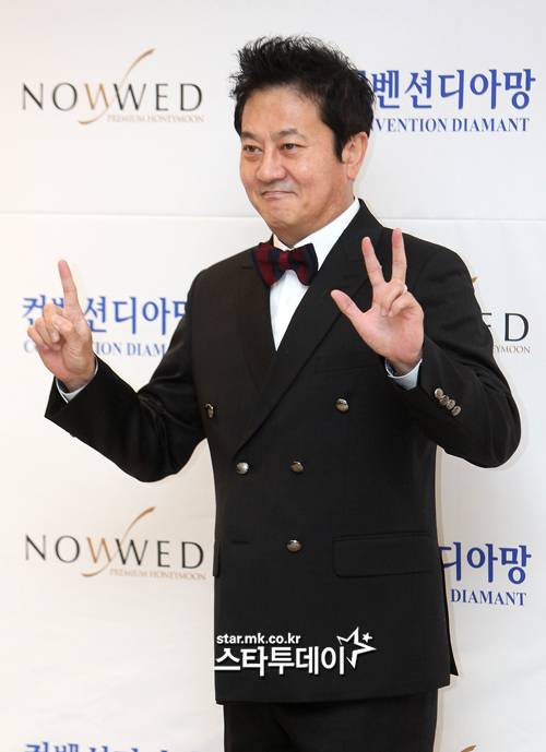 결혼식에 참석한 배우 박준규가 포토타임을 갖고 있다.