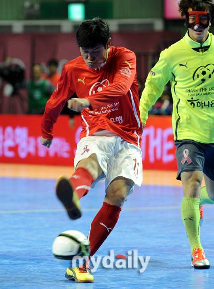 [마이데일리 = 곽경훈 기자]16일 오후 서울 잠실실내체육관에서 열린 2012 홍명보 자선축구 대회에서 최용수 FC서울 감독이 슛팅을 하고 있다.