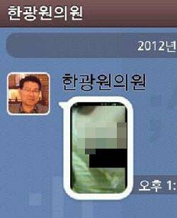 민주통합당 한광원 전 의원이 18일 카카오톡으로 자신의 지인에게 전달한 사진. 사진에는 투표 참여 문구를 적은 젊은 여성의 가슴이 노출돼 있었다. 본지는 모자이크 처리했다.민주통합당 전직 국회의원이 투표 참여를 독려하며 여성의 가슴 부위가 노출된 사진을 휴대전화로 유포해 물의를 빚고 있다. 새누리당 정옥임 대변인은 18일 "여성의 신체를 상품화한 여성 비하 음란물까지 만들어 투표를 독려하는 민주당 문재인 후보 측의 행태가 개탄스럽다"며 카카오톡으로 전파된 문제의 사진을 공개했다.