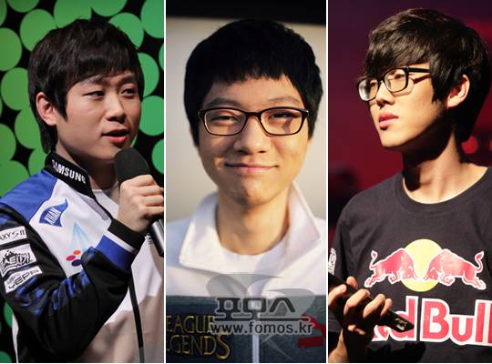 왼쪽부터 허영무, 홍민기, 원이삭.삼성전자의 허영무와 스타테일 원이삭, 아주부의 홍민기가 팬들이 꼽은 2012년 최고의 프로게이머로 선정되는 영광을 안게 됐다.