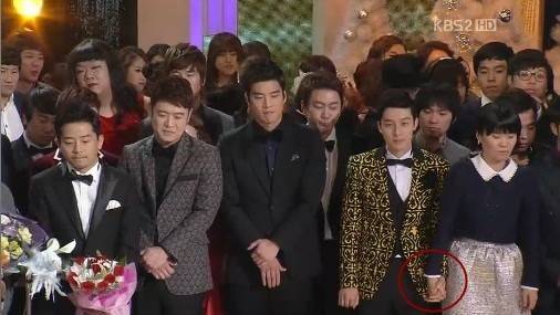그런데 무대에 나란히 서 있던 허경환과 박지선은 연인들이나 할 법한 손깍지를 끼고 있어 시청자들의 눈을 의심케 했다. 특히나 뒷쪽에 있던 개그맨들도 두 사람의 손을 보는 듯해 의구심을 더 키웠다.