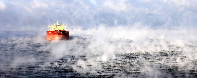 그 사이 배는 스칸디나비아 반도를 돌아 러시아의 북서쪽 끝 콜라반도에 들어섰다. 눈 덮인 동토 사이를 비집고 들어가자 무색의 도시 무르만스크가 나왔다. 이파리 없는 나무로 뒤덮인 검은 산, 그 속에서 검은 연기를 뿜는 재래식 가옥. 수면은 무거운 구름을 머금어 하늘처럼 어둡다.