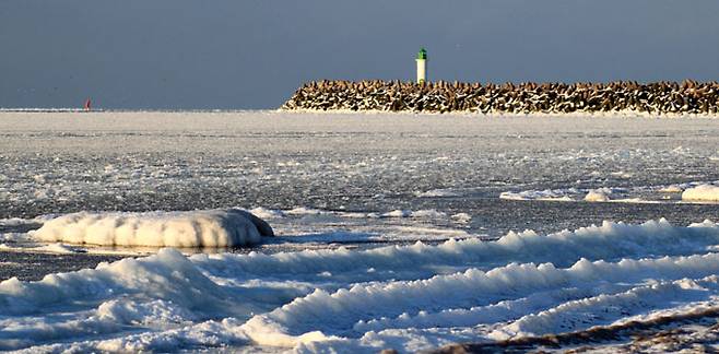 기온이 순식간에 영하로 떨어졌다. 지구의 꼭대기 근처라 정오에도 태양은 어깨 아래. 하늘은 가을처럼 푸르렀다. 폴란드 연안에 접어들자 바다가 입김을 토했다. 상대적으로 따뜻한 물 위에 찬바람이 덮치면서 물안개가 꼈다. 날씨는 맑지만 아무것도 보이지 않았다. 공동묘지를 가로지르는 것처럼 섬뜩했다. 이곳에서 숨진 사람이 적지 않으니 그럴 만했다.