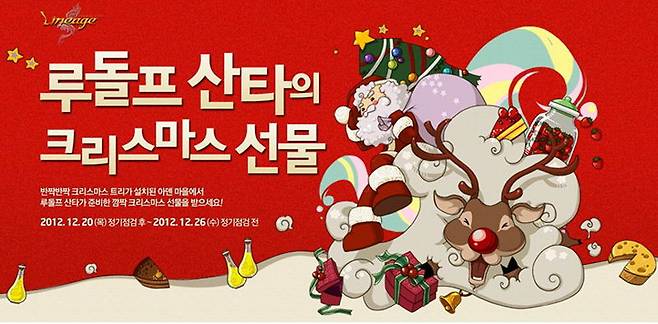 넥슨의 대표 게임'메이플스토리'에서는 이달 31일까지 게임에 접속한 모든 게이머에게 크리스마스 코스튬 아이템이 지급되는 것을 비롯해 사냥터에서 획득 후 개봉 시 다양한 게임 아이템을 얻을 수 있는 '산타의 빛나는 상자', '루돌프의 빛나는 상자'가 제공하고, 8개의 주요 마을에 세워진 크리스마스 트리를 꾸미는 퀘스트를 완료한 게이머에게는 각종 최고급 '주문서' 아이템을 선물한다.