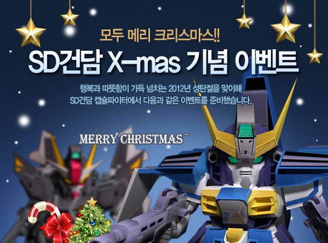 'SD건담 캡슐 파이터'에서는 '웹 레어 캡슐 머신 이벤트'와 '크리스마스 캡슐머신 이벤트'를 통해 2012년 이전 유닛과 스페셜 캡슐 머신을 획득할 수 있으며, 오는 25일까지 모든 이용자에게 크리스마스 선물을 열수 있는 열쇠가 지급된다. 또한 '지구연방군'과 '소데츠키' 두 세력간의 세력전이 내년 1월 2일까지 진행된다.