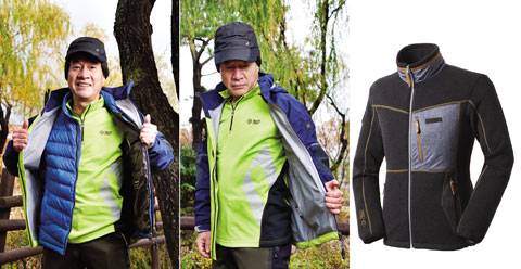 ↑ [월간산]속옷+보온옷+겉옷을 순서에 맞게 껴입었다. / 속옷+겉옷을 입었다. 방수방풍과 투습 능력이 뛰어난 조합 이라 겨울 산행 복장으로 유용하다. 보온옷은 쉴 때 입는다. / 파일(플리스)재킷. 다운에 비해 저렴하고 활동성이 뛰어난 보온옷이다. |