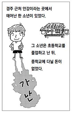이야기는 이렇게 시작한다. (경북) 경주 근처 안강이라는 곳에서 태어난 한 소년이 있었다. 소년은 초등학교를 졸업한 뒤 중학교에 다닐 돈이 없었다. 학비를 벌기 위해 1년 동안 산에서 나무를 해 적으나마 학비를 준비했다. 그러다 포항에 가면 공짜로 공부하는 곳이 있다는 말을 듣게 됐다. 소년은 세 시간이나 걸어서 학교에 갔다. 하지만 교장(선생님)은 "너무 머니 포기하라"고 했다. 소년은 끝까지 우기고 애원해 입학할 수 있었다. 그 후 매일 오전 4시에 책 보따리를 짊어지고 먼 길을 통학했다.