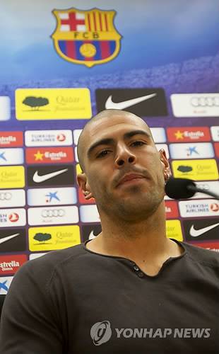 epa03523119 FC Barcelona's Spanish goalie, Victor Valdes, during a press conference held after a team's training session in Barcelona, northeastern Spain, 03 January 2013. FC Barcelona will face Espanyol in a Spanish Primera Division soccer match the upcoming 06 January. EPA/ALEJANDRO GARCIA ☞ 국정원 여직원, 진보성향 웹사이트 글에 '찬반 표시' ☞ 황신혜·심혜진 등, MBC '배우들' 공동 MC ☞ 올해 공무원 보수 총액기준 2.8% 인상(종합) ☞ < 후보 5명 각축..뜨거워진 제52대 축구협회장 선거 > ☞ < 첫 '화학적 거세' 명령…어떻게 집행되나 >