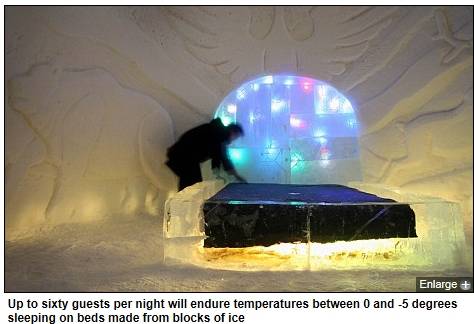 얼음 침대에서 잠을 자는 일이 가능할까? 해마다 수만명의 관광객들이 이 같은 호기심을 풀기 위해 '아이스 호텔(Ice Hotel)'로 몰려든다. 스웨덴 북부 유카스야르비 마을에 위치한 이 호텔은 1989년 오픈한 이래로 연간 2만~3만명의 관광객이 투숙한다.