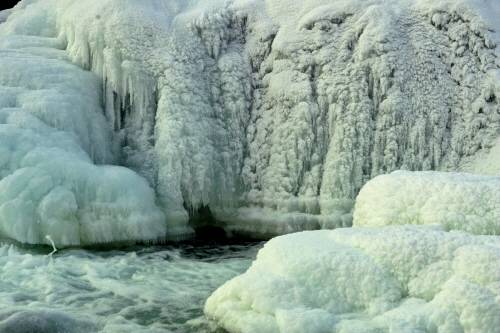 폭포수가 낙하하다가 동장군에게 잡혀 켜켜이 겹겹으로 얼어붙은 모습은 마치 뭉게구름을 연상케 하기도 하고, 거대한 솜사탕처럼 보이기도. 얼음기둥 안에는 아직도 얼지 않고 흐르고 있는 폭포소리가 '쏴아~ 쏴아~' 들린다.