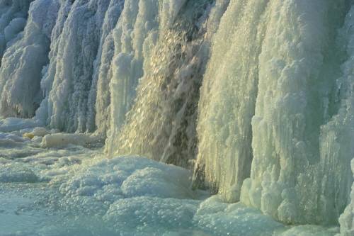 폭포수가 낙하하다가 동장군에게 잡혀 켜켜이 겹겹으로 얼어붙은 모습은 마치 뭉게구름을 연상케 하기도 하고, 거대한 솜사탕처럼 보이기도. 얼음기둥 안에는 아직도 얼지 않고 흐르고 있는 폭포소리가 '쏴아~ 쏴아~' 들린다.