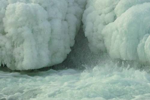 얼음 기둥을 바라보고 있노라면 금방이라도 하얀 북극곰이 '으르렁' 거리며 튀어 나올 것만 같은 착각에 빠진다. 얼음 조각이 융기돼 다닥다닥 엉겨 붙은 모습은 마치 거대한 북극곰을 연상케 한다.