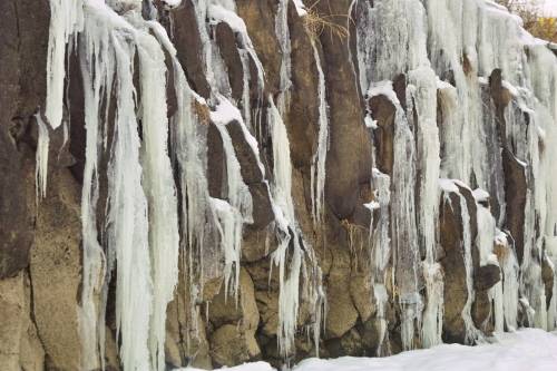 협곡의 절벽에는 다각형의 주상절리 돌기둥이 절경을 이루고 있다. 용암이 흐르다가 냉각과 응고에 따라 부피가 수축되며 생긴 다각형의 돌기둥. 그 돌기둥들이 얼음기둥과 어울려 기묘한 풍경을 자아내고 있다.