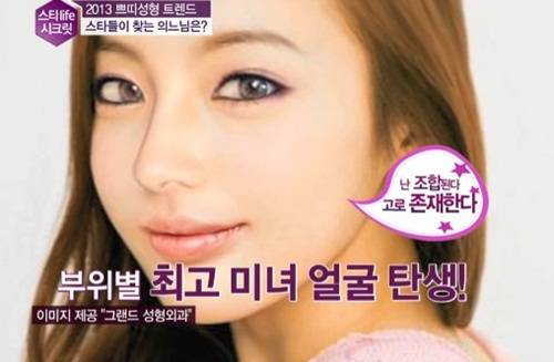 뽑힌 부위별 미인은 걸그룹 카라의 멤버 구하라의 얼굴형과 포미닛의 멤버 현아의 눈, 배우 이민정의 코와 윤은혜의 입술을 합성해 만들어졌다.