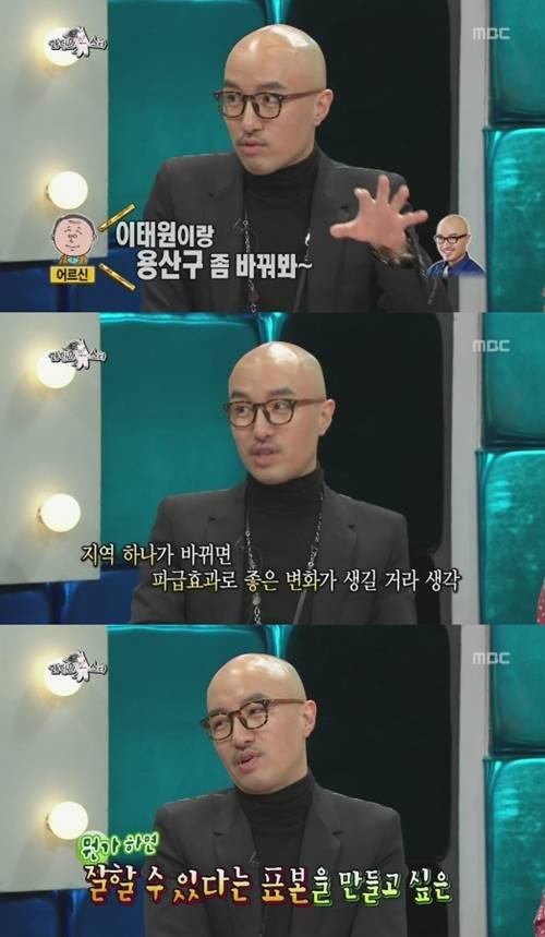 홍석천은 "내가 사업 시작할 때 범죄 같은 것 때문에 이태원이 좋지 않았다. 한국분들이 무서워했는데 예쁜 가게가 들어서니까 제일 핫플레이스가 됐다. 어르신들이 보고 나중에 구청장이나 나가서 이태원이랑 용산구를 바꿔보라고 했는데 생각해보니 나쁘지 않더라"고 이야기했다.