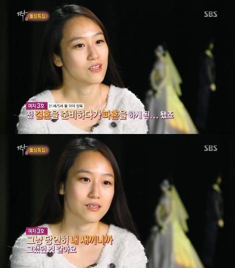 - 짝 싱글맘 여자3호 "결혼 코앞 파혼, 낙태? 고민도 안했다"