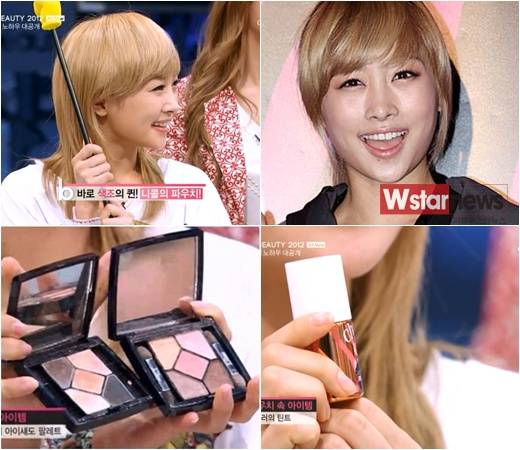 디올 5 꿀뢰르 아이섀도우 팔레트/ 닥터자르트 세라마이딘 에멀전, 크림/ 베네피트 베네틴트 립밤 SPF15/ 바비브라운 팟 루즈 페일핑크/ 베네피트 차차틴트(사진출처: w스타뉴스 DB/ SBS E! '서인영의 스타 뷰티쇼', 온스타일 '유진의 겟잇뷰티' 캡처/ 닥터자르트/ 디올/ 베네피트/ 바비브라운)