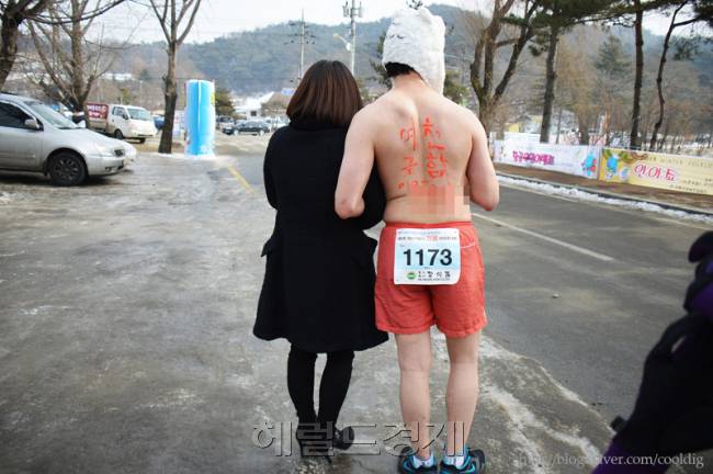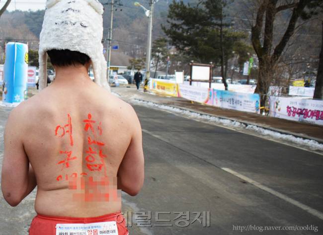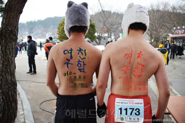 사연이 더 재밌다. 대한(大寒)인 20일 겹겹이 입어도 추운 영하의 날씨, 충북 제천시 의림지에서 전국의림지알몸마라톤대회가 연례행사 일환으로 열렸다.