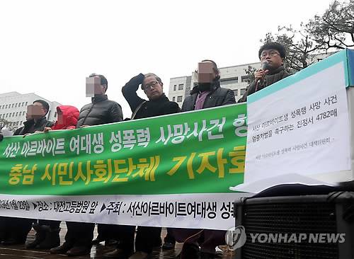 공판에 앞서 유족과 시민단체 관계자는 법원 앞에서 '가해자 엄중히 처벌 촉구' 기자회견을 열어 "고용주라는 우월적 지위를 이용한 범행에 대해 재판부가 현명한 판결을 내려야 한다"고 주장했다.
