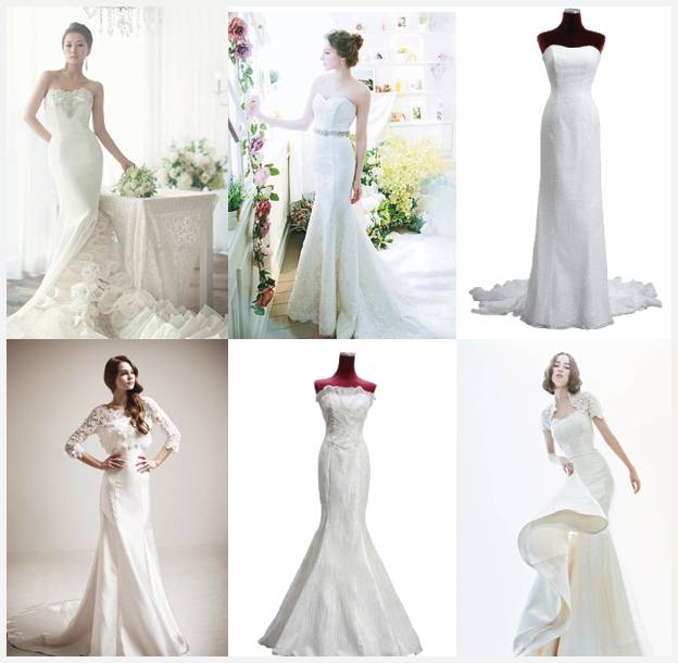 머메이드라인 드레스는 마른 편이라기보다 볼륨 있는 몸매의 신부나 얼굴이 둥글거나 각이진신부, 어깨가 넓거나 덩치가 큰신부, 공주 스타일보다는 화려한 것을 선호하는 신부에게 제격이다.