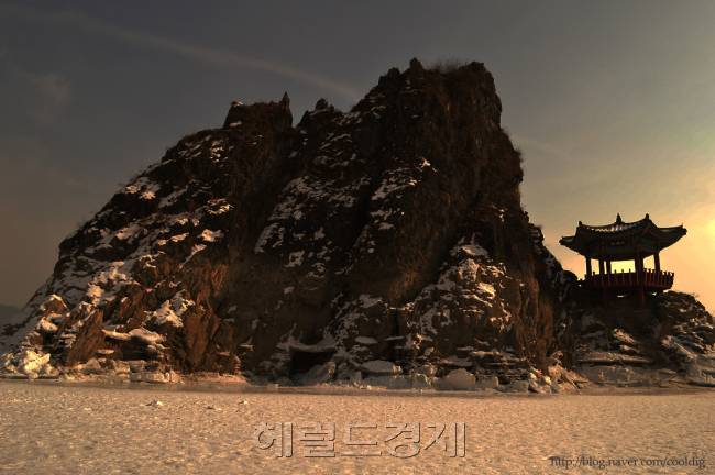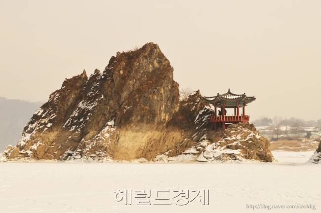 첫번째 방문때의 새벽 물안개 풍경과 달리 두번째 찾았을 땐 강물이 꽁꽁 얼었고 온 세상이 눈으로 덮인 경치가 일품이었다. 많은 관광객들이 삼봉에 다가가 즐겼고 나 역시 정자에 올라 누군가가 했을 법한 폼을 잡고 앉아봤다.