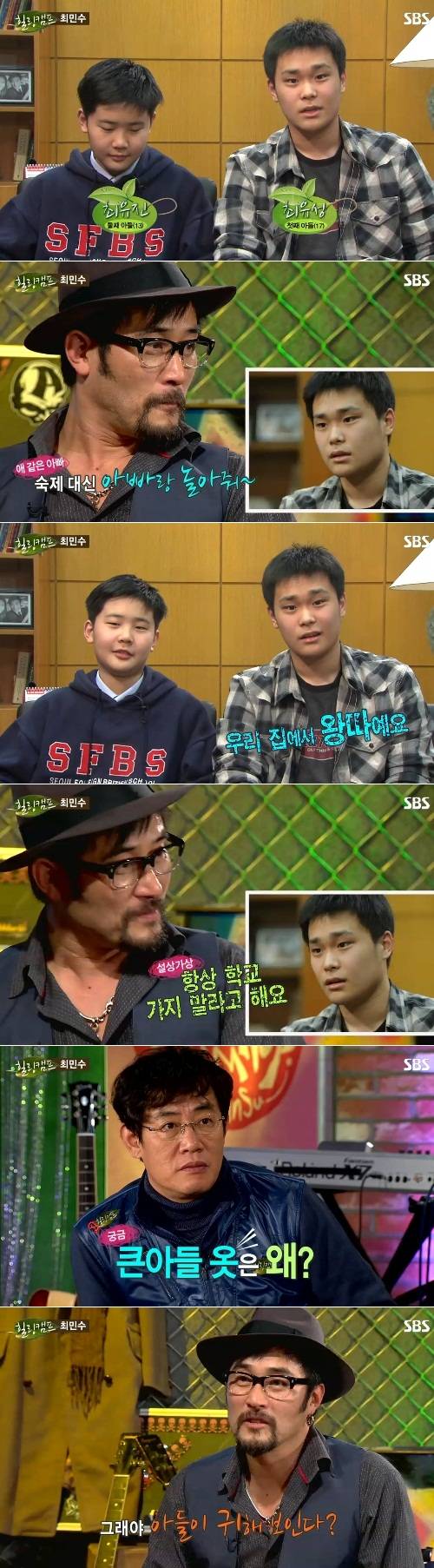 '힐링캠프' 최민수 두 아들, "왕따 아빠, 학교 못 가게 옷도 뺏어"