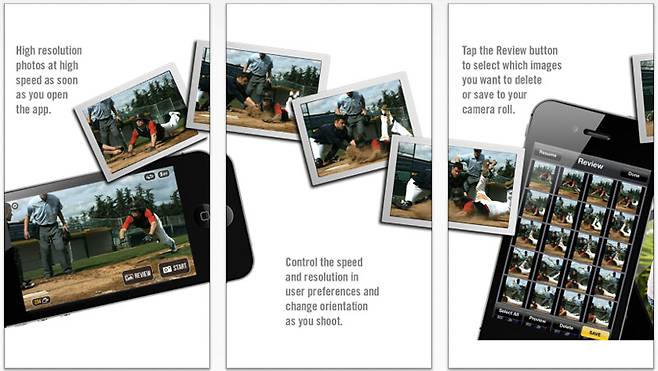 신규 유료 인기 앱 1위 'Fast Camera'는 촬영을 연속해서 할 수 있는 앱이다. 개발자에 따르면 분당 800장 이상(아이폰 4S기준, 아이패드2는 720장 이상)사진을 찍을 수 있다. 촬영 속도는 조절할 수 있으며, 이렇게 찍은 사진 중 원하는 것만 골라 저장하면 된다.