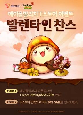 그 일환으로 오는 21일까지 T스토어를 통해 '메이플스토리 빌리지'를 다운로드 받은 유저에게 T스토어 캐시 '2000포인트'를 지급하고, T스토어에서만 '메이플스토리 빌리지'의 모든 리프 상품을30% 할인된 가격으로 판매한다.