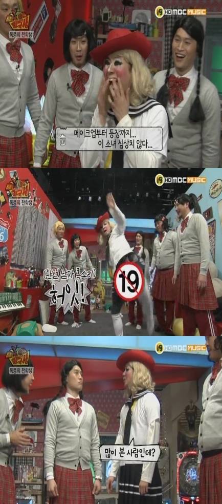 박성호는 "하극여상에 전학 왔스무니다. 하극여상파에 가입하고 싶스무니다"고 희망했다. 이어 KBS 2TV '개그콘서트' 동료 송준근을 발견한 박성호는 "많이 본 사람이 여기 있다"고 말을 걸었다.
