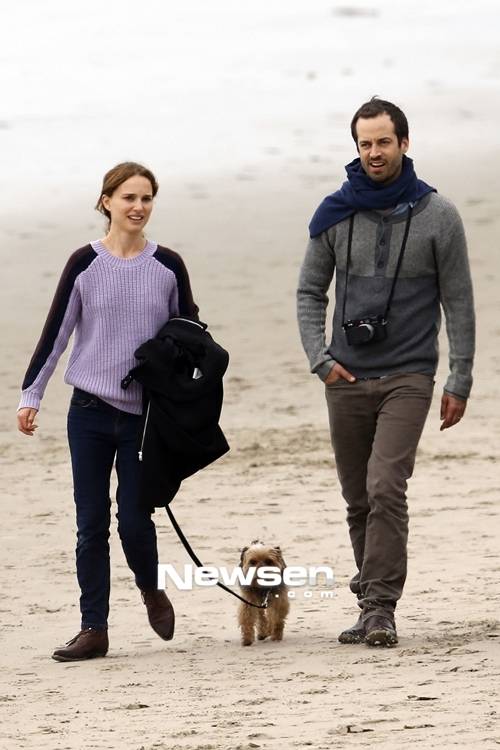 보도에 따르면 나탈리 포트만은 최근 4살 연상의 남편 벤자민 밀피에드(35)와 함께 미국 캘리포니아주 샌타바버라에 위치한 한 바닷가를 찾았다. 공개된 사진 속 나탈리 포트만은 편한 차림으로 벤자민 밀피에드, 애완견과 함께 해변을 산책하고 있다.