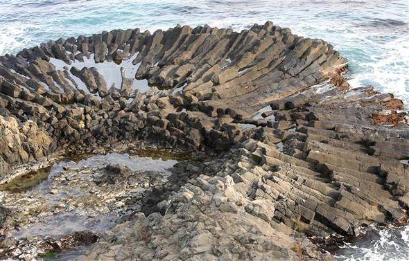 "요래 생긴 주상절리는 세계적으로도 사례가 드문 기라."