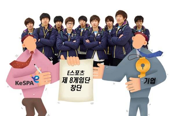 현재 8게임단은 e스포츠 협회가 위탁 운영하고 있으며 한상용 수석 코치를 비롯해 김재훈, 전태양 등 '스타크래프트2' 주전급 선수들이 포함돼 있다.이 팀은 재작년 온게임넷, MBC게임, 화승 등 3개 기업이 게임단 운영을 포기함에 따라 소속 선수들의 구제와 프로리그 정상 운영을 위해 협회가 구성했다.