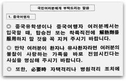 "정부는 사스 의심 환자를 10일간 강제 격리할 수 있도록 조치하겠습니다. 필요 시 자택 격리나 병원 격리 조치에 지체 없이 동의해 주십시오."