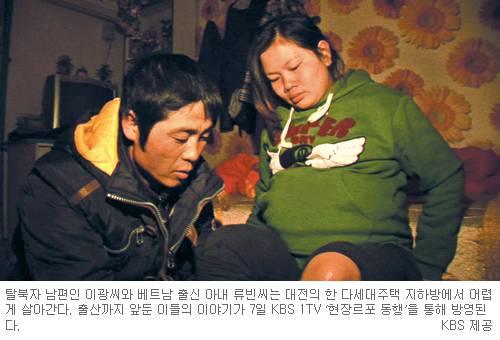 베트남 출신 류빈(25)씨는 대전에서 가정을 이루고 산다. 만삭인 그녀는 곧 아이를 출산할 예정이다. 한데 그녀의 남편은 탈북자다. 남편 이광(40)씨는 북한에서 13년간 통신병으로 군복무를 했다. 제대 후 가족과 함께 탈북해 2006년 남한 땅을 밟았다.