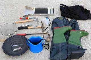 물속 지형을 잘 들여다보기 위해선 탐사경(수경)이 필요하다. 탐사경을 통해 바위틈의 흙과 이물질을 제거하고 틈에 낀 사금 조각을 핀셋으로 집어내기도 한다. 이밖에 물속 작업을 위한 목이 긴 장화, 자갈 거름용 철망, 사금을 보관하는 유리병, 사금·광석 관찰용 확대경(루페)도 요긴한 장비다.