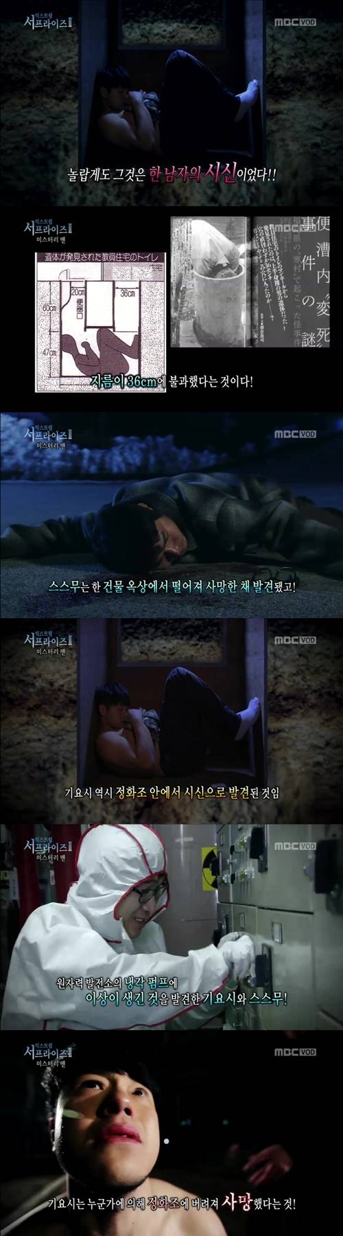 10일 방송된 MBC '신비한 TV 서프라이즈(이하 서프라이즈)'에서는 화장실 정화조에서 시신으로 발견 된 의문의 남자의 이야기가 소개 되었다.