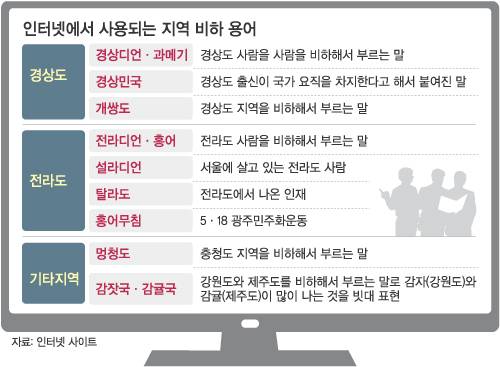 인터넷상에서 망국적인 '지역감정'이 되살아나고 있다. 전라도와 경상도 등 특정지역에 대한 폭언과 욕설이 난무하고, 청소년들은 장난삼아 지역 비하를 따라 한다. 더 큰 문제는 이처럼 근거 없이 양산된 지역 비하 글들이 아무런 제약도 없이 사이버 공간을 장식하고 있다는 점이다.