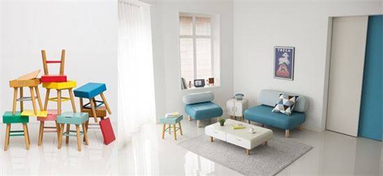 1·2인용 쇼파로 구성된 '크리스핀 소파'는 두가지 색상으로 이뤄진 바닐라 민트와 한 톤으로 심플한 느낌을 주는 내추럴 등 두가지 종류로 출시됐다. 불필요한 장식은 최소화하되 입체감이 느껴지는 볼륨 디자인을 강조했다. 동글동글한 곡선형의 디자인과 상큼한 색상, 원목의 다리가 조화를 이뤄 세련된 인테리어 효과를 낸다.
