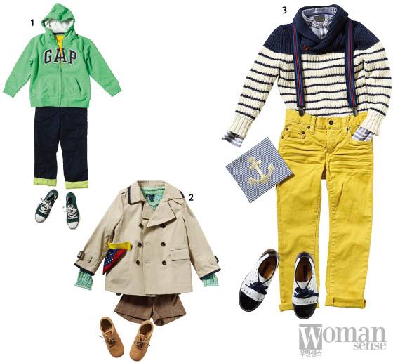단정하게 잘 차려입은 아이에게 한 번 더 눈길이 간다는 게 대다수 선생님들의 코멘트. 남자아이들은 기본적으로 돌려 입기 좋은 PK셔츠와 칼라 셔츠로 적절히 컬러 매치를 하면 일명 엄친아 패션이 완성된다. 엄마들이 선호하는 대표적인 브랜드로는 빈폴과 폴로가 있다. 캐주얼과 클래식한 무드의 양대 산맥을 이루는 이 두 브랜드를 비교했을 때, 폴로는 '직구'로 구매하면 백화점보다 2.5배가량 저렴하게 구입할 수 있고, 빈폴은 원단이 좋아 물 빠짐이 없고 늘어나지 않아 인기다. 포멀하게 입을 땐 여러 겹을 겹쳐 입기보다는 한 아이템만 입는 것이 좋다. 과하게 코디하면 촌스러워 보일 수 있으므로 가장 활용도가 높은 기본형 셔츠와 버튼 재킷이 정답이다.
