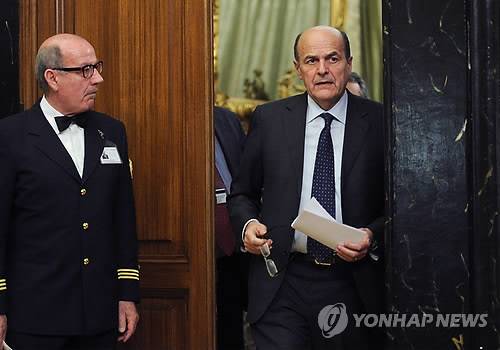 epa03641550 Leader of Italy's Democratic Party (PD) Pier Luigi Bersani arrives to address media after consultations in Rome, Italy, 26 March 2013. Bersani will report back to the president on 26 March on efforts to gather support for a coalition government following last month's inconclusive elections, one of his aides said. EPA/ETTORE FERRARI ☞ 北, 軍 최고사령부 성명…"전투근무태세 진입"(2보)☞ 이효리·호란, 위안부 피해 여성 위한 음반 참여☞ < 北 '1호 전투근무태세'란…당국 "생소한 표현" >☞ -월드컵축구- 손흥민 결승골 한국, 카타르 제압(종합2보)☞ 軍 "北 가장 높은 전투준비태세 추정…만반 대비중"(종합)